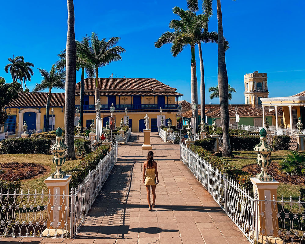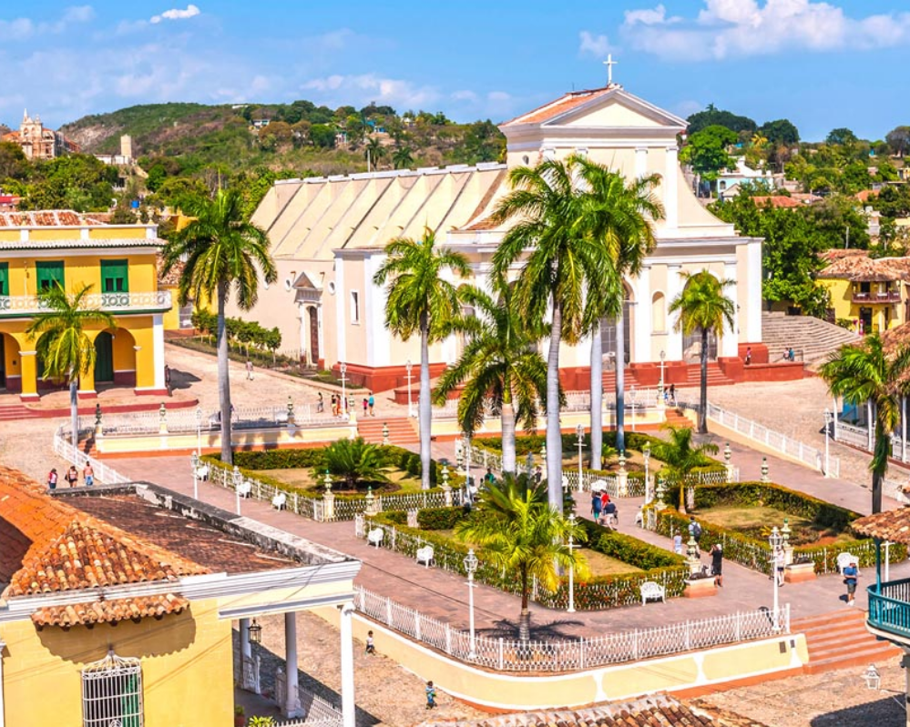 Día 5. Desayuno en el Hotel. Recorrido por la Ciudad de Trinidad con visita a la Plaza Mayor, la Casa Santander, el Museo Palacio Cantero. Visita al bar la Canchánchara, para degustar del famoso cóctel cubano de mismo nombre. La Canchánchara es considerada un símbolo de la ciudad de Trinidad cuyo hábito de consumir esta bebida se remonta a varios siglos, y aunque el paso del tiempo ha cambiado la forma en que se bebe, se ha mantenido en la preferencia de muchos. Excursión al valle de los ingenios para conocer sobre la caña de azúcar. Visita a Manaca a Iznaga, dónde podrá disfrutar de un delicioso guarapo (opcional), esta bebida dulce y refrescante muy auténtica de Cuba que nos adentra en uno de los recursos  económicos  principales en  la  historia del  país,  la